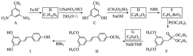 选考题:白藜芦醇(化合物I)具有抗肿瘤、抗氧化、消炎等功效。以下是某课题组合成化合物I的路线。