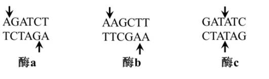 (2)质粒载体上有限制酶a、b、c的酶切位点,限制酶的切割位点如图所示。构建重组质粒时,与用酶a单酶切相比,用酶a和酶b双酶切的优点体现在________(答出两点即可);使用酶c单酶切构建重组质粒时宜选用的连接酶是________。