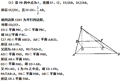(2)证明:DE⊥平面PAB;