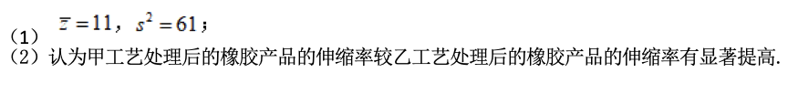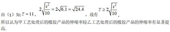 (2)判断甲工艺处理后的橡胶产品的伸缩率较乙工艺处理后的橡胶产品的伸缩率是否有显著提高(如果