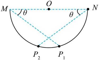 小圆环带负电,半圆弧上有两个固定的负点电荷,小圆环从靠近N点处释放后会在静电力作用下运动,需要判断从