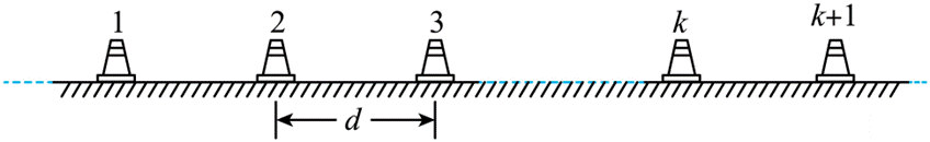 如图,轮滑训练场沿直线等间距地摆放着若干个定位锥筒,锥筒间距