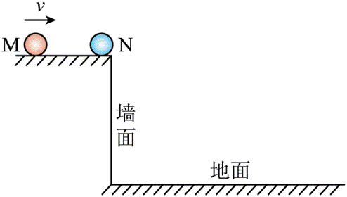 如图,在光滑平台上有两个相同的弹性小球M和N。M水平向右运动,速度大小为v。M与静置于平台边缘的N发生正碰,碰撞过程中总机械能守恒。若不计空气阻力,则碰撞后,N在( )