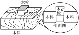 如图,坚硬的水平地面上放置一木料,木料上有一个竖直方向的方孔,方孔各侧壁完全相同。木栓材质坚硬,形状为正四棱台,上下底面均为正方形,四个侧面完全相同且与上底面的夹角均为