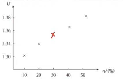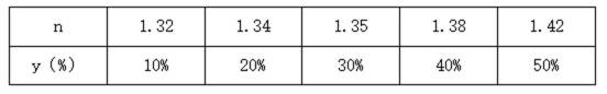 将30%的数据绘图,求得糖水浓度每增加10%,折射率的增加值为 (保留两位有效数字)。