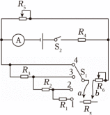 用等效替代法测待测电阻,R5为R6的滑动变阻器,最大阻值为100Ω,E=1.5V,电流表A量程30mA,R1=R2=R3=R4=100Ω,可轻转开关S1于1﹣4号,R6可读数。