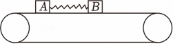 传送带转动的速度大小恒为1m/s,顺时针转动,物块A,B中间有一根轻弹簧,A的质量为1kg,B的质量为2kg,A与传送带的动摩擦因数为0.5,B与传送带的动摩擦因数为0.25。t=0时,A速度为v0=2m/s,B的速度为零。在t=t0时,A与传送带第一次共速,此时弹簧弹性势能Ep=0.75J,传送带足够长,A可留下痕迹,则( )
