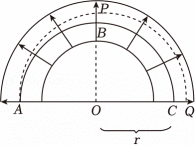 某种静电分析器简化图如图所示,在两条半圆形圆弧板组成的管道中加上径向电场。现将一电子a自A点垂直电场射出,恰好做圆周运动,运动轨迹为ABC,半径为r。另一电子b自A点垂直电场射出,轨迹为弧APQ,其中PBO共线,已知BP电势差为U,|CQ|=2|BP|,a粒子入射动能为Ek,则( )