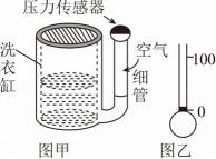 洗衣机水箱的导管内存在一竖直空气柱,根据此空气柱的长度可知洗衣机内的水量多少。当空气柱压强为p1时,空气柱长度为L1,水位下降后,空气柱温度不变,空气柱内压强为p2,则空气柱长度L2= ,该过程中内部气体对外界 。(填做正功,做负功,不做功)