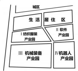 容积率是城市建设用地地块上总建筑面积与地块面积的比值,一般来说,工业园区中楼层越多,容积率越高,如图示意某城市工业园区规划的功能分区,其中,各产业园容积率按照适合生产的最大容许程度取值,以提高土地利用效率。生活居住区曾有以高层建筑为主的高容积率和以中高层建筑为主的低容积率两个规划方案,政府部门最后采纳了低容积率方案。据此完成下面小题。