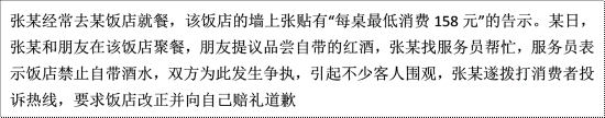 ④饭店禁止自带酒水侵害了张某的自主选择权