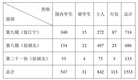 下表是清末新军第九镇、第八镇及第二十一协军官的来源构成。这可用于说明新军( )