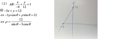 (2)以坐标原点为极点,x轴正半轴为极轴建立极坐标系,求直线AB的极坐标方程.